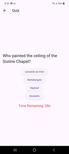 Challenge yourself in this engaging single-player quiz game! ๐ง โจ Choose from multiple time limits, including an unlimited option โณ, and answer a variety of questions across different topics. Track your stats ๐ as you race against the clock or take your time to think strategically. Perfect for quiz enthusiasts of all ages—test your knowledge and see how high you can score! ๐